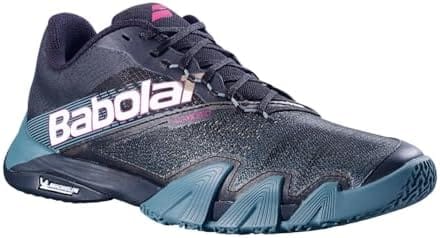 Babolat 30S24752-2043 Jet Premura 2 Men Padel Shoes is 100 percent designed and developed for padel players. It is a light and flexible shoe, ideal for players who want to move quickly around the court. The shoe includes extra ventilation pieces for even more breathability resulting in excellent comfort even in the heat of the moment. The shoes offer excellent grip on padel courts, thanks to the combination of a herringbone tread with an omnizole. The strong outsole comes from the Michelin factory. The materials used in the manufacture of tires are also used in the outsole of this premium shoe. By using strong and abrasion-resistant rubber, the durability is unmatched. The midsole of this shoe contains the KPRS-X technology, which provides excellent cushioning and comfort and consists of strategically placed foam around the heel and foot. Finally, the Ortholite insole with antibacterial foam provides extra comfort. It comes in size 10.5 UK with black/north atlantic color.