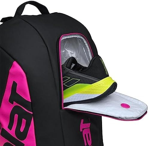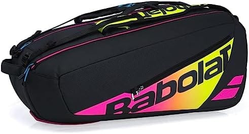 The Babolat RH6 Pure Aero Rafa Tennis Bag offers the best for competitive players looking for the perfect combination of style and performance. This fully insulated bag has 2 massive compartments, so you can organize and protect up to six racquets, two pairs of shoes and all the gear and accessories you need. And it stands up on its own. This tennis bag features a robust, waterproof and hard-wearing outer while a new durable insulated material keeps your strings at the right tension, safe from temperature fluctuations. Developed for the most demanding players, this bag gives your equipment maximum protection.