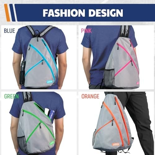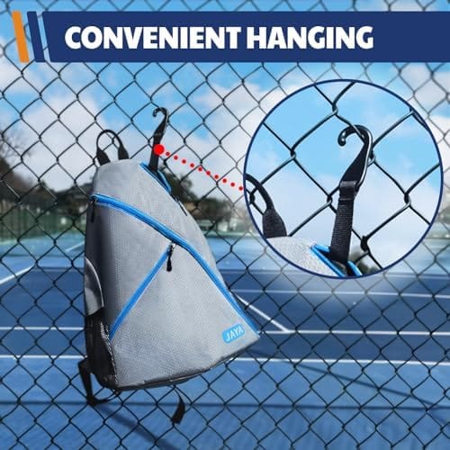 JAYA Portable Pickleball Paddles Bag, Reversible Crossbody Backpack for Men and Women, Adjustable Sling Design in Sports or Travel with Water Bottle Holder and Fence Hook
