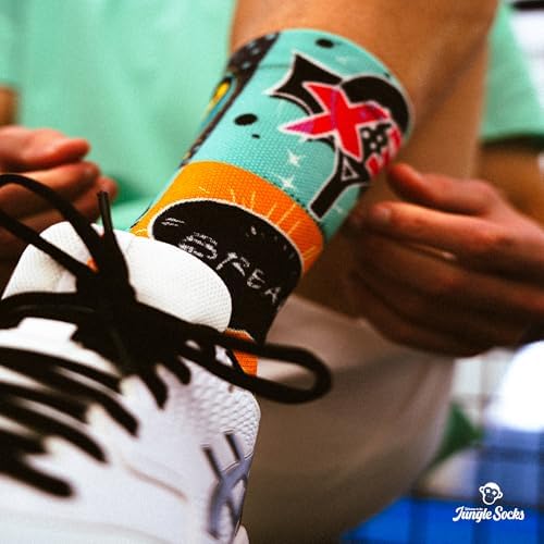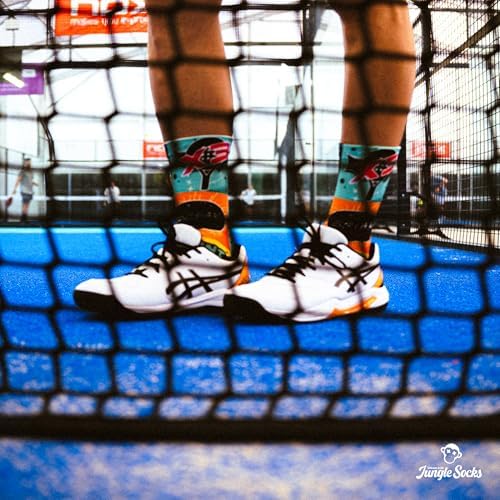 Discover excellence on the field with the Jungle Socks Padel Series, the socks specially designed for padel lovers. These high-performance socks combine innovation and design to provide optimal support with every movement. Equipped with strategic reinforcements on the toe, heel, metatarsal area and Achilles tendon, they provide unparalleled protection, reduce the risk of injury and prevent blistering. The exclusive compression band stabilises the foot during play, and the ventilated mesh ensures breathability and freshness at all times, minimising friction and preventing chafing. Made of high quality materials and with flat seams, they are soft to the touch, durable and retain their bright colours even after washing. At Jungle Socks we care not only about your performance, but also your style. Our socks designed in Europe are characterised by their vibrant colours and unique patterns that reflect passion and energy. Join the best padel players who already trust in the Jungle Socks Padel Series and take your game to the next level! They are also a perfect gift for any padel player. Jungle Socks. Made to be different.