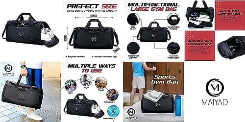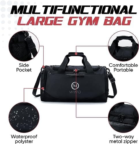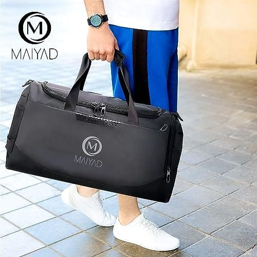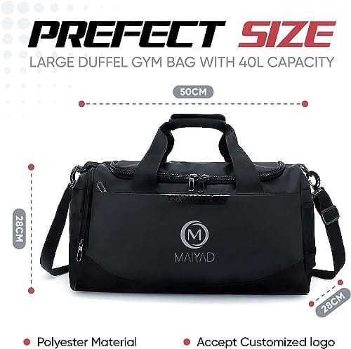 Maiyad sports bag, workout bag, overnight gym bag for men and women. Better quality for better travel, gym and sports! 600D polyester fabric, waterproof & tear-resistant Waterproof and wear-resistant leather Bottom The built-in key ring and the side hook The wet pockets are designed to pack in your wet accessories Premium metal SBS zippers and reinforced major stress points This gym bag is a must for your life. Whether you use it as a sports gym bag, basketball bag or swim bag, it will be your sports helper. BENEFITS OF MIYAD GYM DUFFLE BAG WATER -REPELLENT FABRIC: BODY: 600D water-resistant polyester fabric BOTTOM: PVC waterproof polyester fabric MULTI POCKETS: The gym bags have dedicated pockets and compartments that allow you to neatly organise things. COMFORT AND CONVENIENCE: The bags come with top handles,also include a padded and detachable shoulder strap that frees up your hands and makes it easier to carry. SIZE: Measures 50 x 28 x 25 centimetres with 40L capacity.This roomy bag can carry everything from your shoes to your clothes, from gym equipment to toiletries.