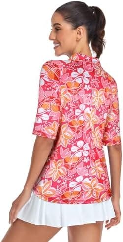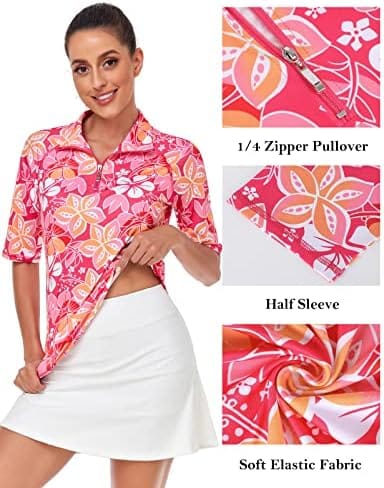 Misyula Womens Golf Shirt Quick Dry Half Sleeve Quarter Zip Polo Workout Tops Tennis Shirts M-XXL