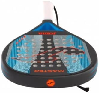Joma Master Paddle Racket is a high-performance racket designed for advanced players who want to take their game to the next level. It has a teardrop shape with a slightly high balance, which provides a good combination of power and control. The racket is made with high-quality materials, including carbon fiber for the face and Eva foam for the core. This gives the racket a solid feel and excellent shock absorption. Teardrop shape with a slightly high balance for power and control. Rough surface for improved grip on the ball. Comfortable handle for easy to grip. Comes in black and fluorescent turquoise colors.