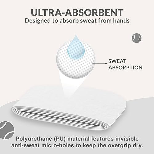 ABSORBENT: Padel racket grip tape designed to quickly absorb hand sweat. Polyuterane (PU) material features invisible sweatproof micro-holes to keep the overgrip dry.