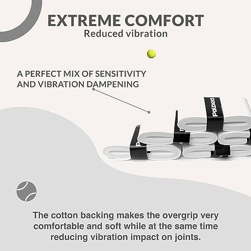 COMFORTABLE: Perfect mix of sensitivity and vibration dampening. The cotton backing makes the padel tennis overgrip very comfortable and soft while reducing vibration and impact on joints.