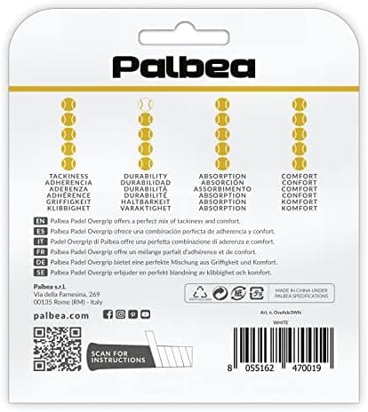 Be the first to review “Palbea Padel OverGrip in White – Extra Tacky Pack of 3/6/12/22/60 – Superior Sweat Absorption – Non-Slip Grip Tape for Padel & Tennis Rackets – Soft Feel – Specially Crafted for Padel Racquets.”