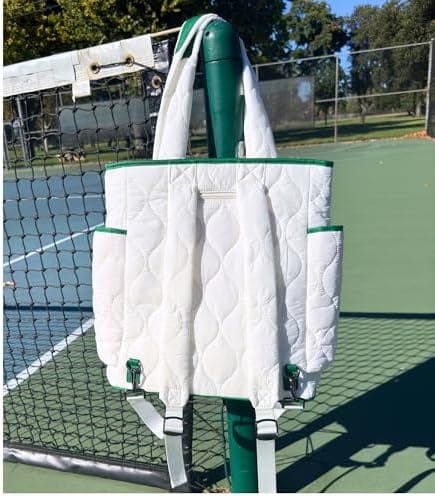 CONVERTIBLE TENNIS OR PADEL BAG FOR WOMEN: Park Ave tennis and padel bags levels up your style. Use it for all of your racket sports. Accomodates two (2) standard size rackets or one (1) oversized racket or one (1) padel racket. Tennis/padel front pocket 15.5″ x 11.5″ x 2″.
