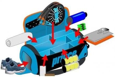 - The middle compartment holds up to 4 rackets, and it can be extended using the side compartments.