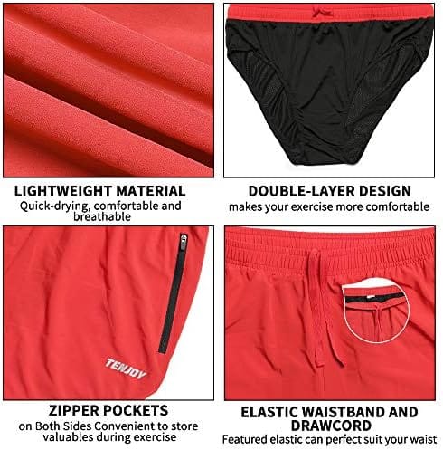 TENJOY Men’s Running Shorts Gym Athletic Workout Shorts for Men 3 inch Sports Shorts with Zipper Pocket
