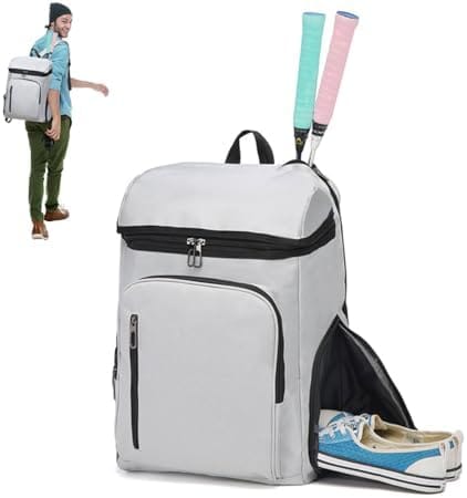 【Premium Oxford Cloth】This tennis racket backpack is made of Oxford fabric, solid splicing, durable and comfortable, both effectively prevent moisture in the backpack items, and prevent scratches. This racquet carrying bag’s adjustable breathable mesh shoulder strap reduces shoulder pressure. Our tennis backpack for men & women is very light, only 0.68kg, designed for outdoor sports, suitable for going to the tennis court or sports to carry.