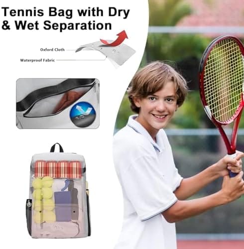 【User-Friendly Designs】This large racket bag is set with a pocket that can be used specifically for wet, dirty clothes to prevent sweat stains and water from staining other dry items. Not only that, this large Tennis bag offers a large main compartment and a front middle compartment, a large bag for tennis racket storage and more. Our outdoors tennis backpack can hold not only tennis or badminton rackets, but also shoes, water, tablet, clothes and other items.