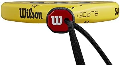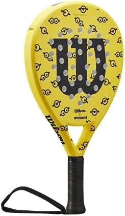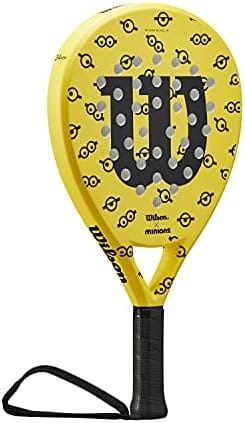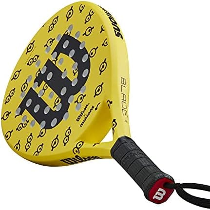 Wilson Blade Junior padel racket for children and youths, Improved power transmission through Sharp Hole technology – Adapted length to suit the needs of children and young people, Optimal combination of stability and responsiveness thanks to fibreglass weave technology – Perfect combination of responsiveness and weight for low arm fatigue – Optimal combination of grip, comfort and feel, Incl. wrist strap – Contents: 1x Wilson Minions Junior Eyes padel racket, For children, Material: Fibreglass/EVA, Weight: 300 g, Colour: Yellow/Black, WR070611U0