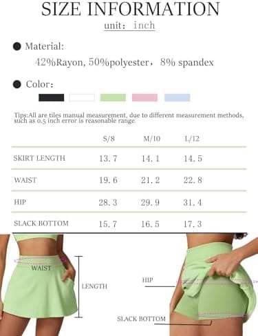 Women’s Tennis Skirt Built in Shorts Golf Skirts Athletic Skorts Skirts for Sports Running Gym with Side Pockets