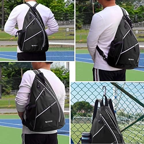 ZOEA Pickleball Bag, Sport Pickleball Sling Bag for Women Man, Adjustable Pickleball Backpack with Fence Hook Water Bottle Holder, Fits 4 Paddles and All Your Other Gear